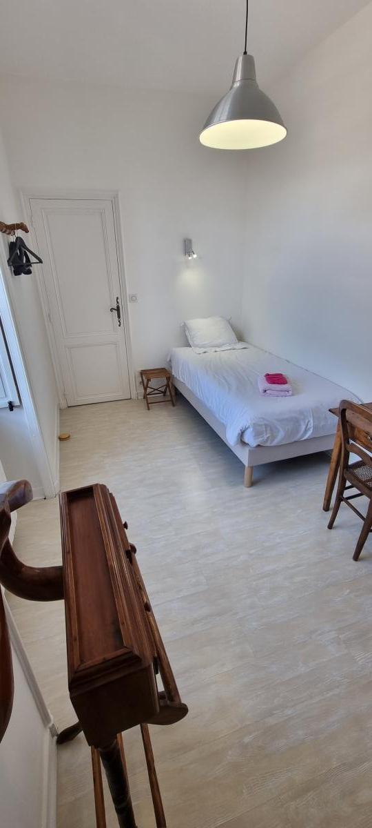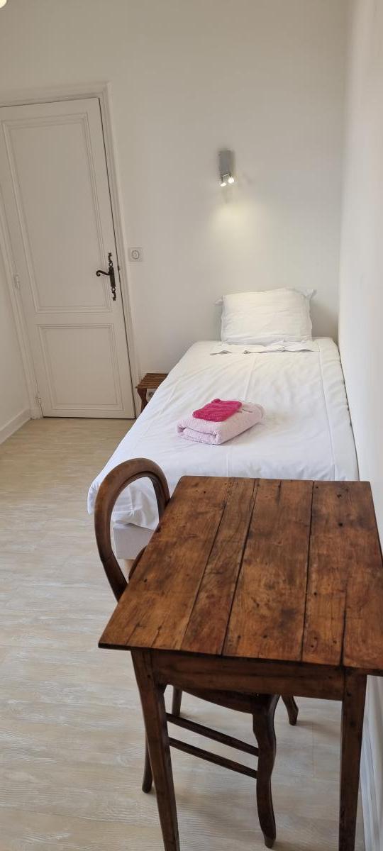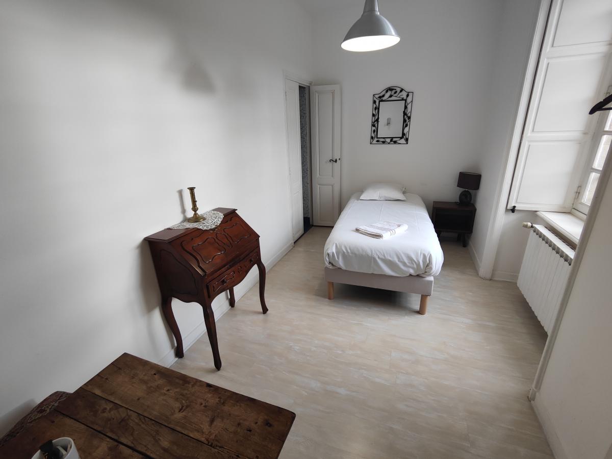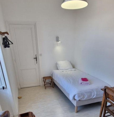 Située au 2ème étage, cette chambre pour une personne est équipée d'un lit tout neuf avec un matelas haut de gamme (90x200cm), d'une salle de bain privée avec douche à l'italienne et WC. Un sèche cheveux est à disposition et le linge de toilette est fourni.